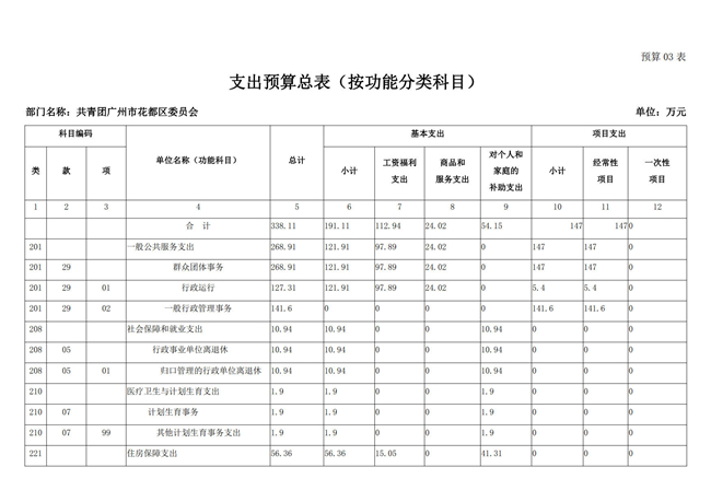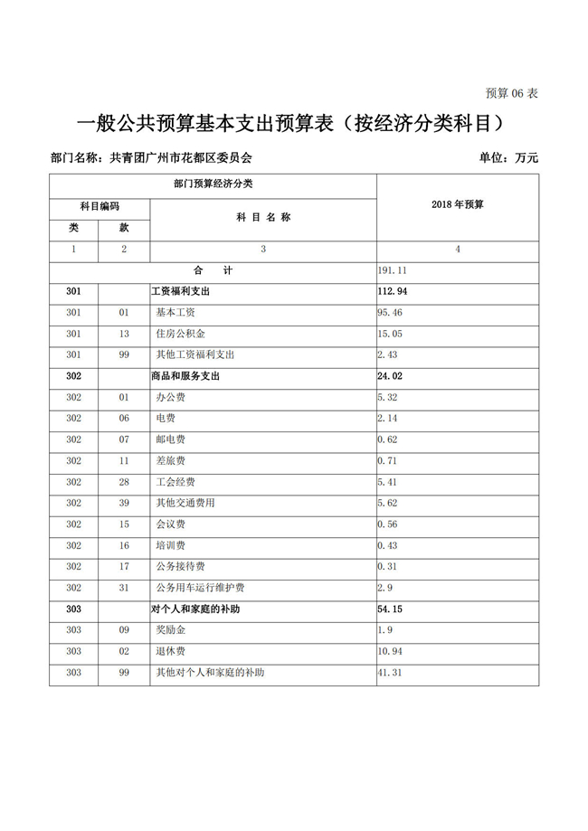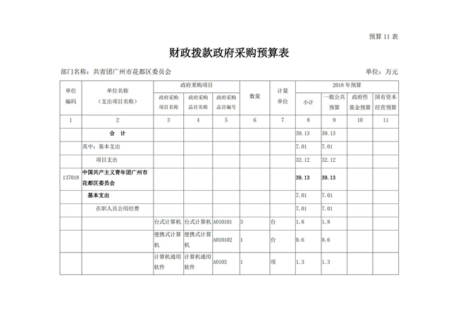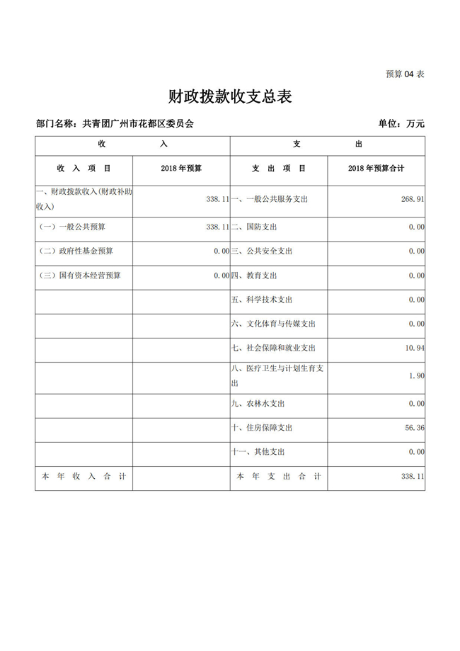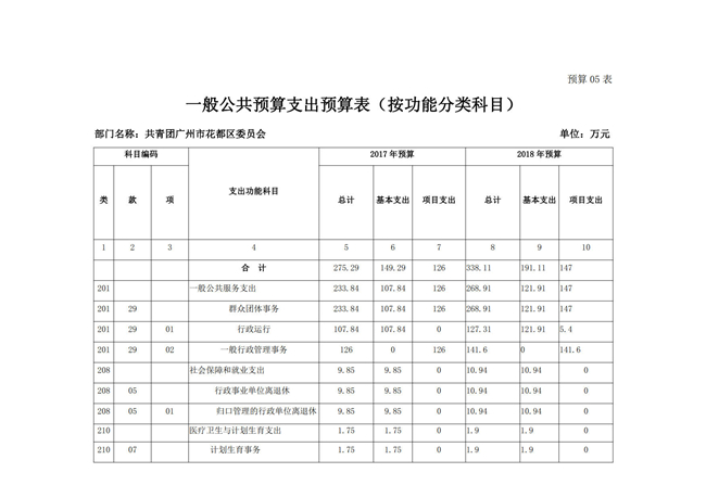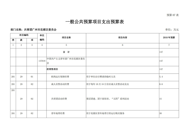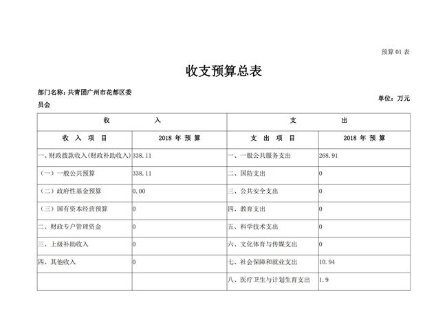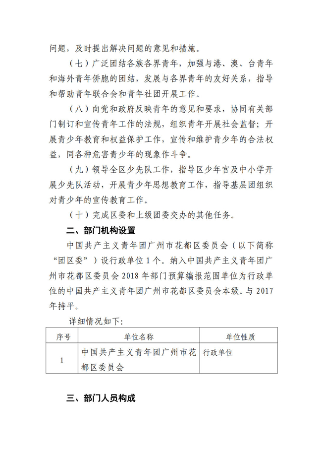 中國共產主義青年團廣州市花都區委員會2018年部門預算