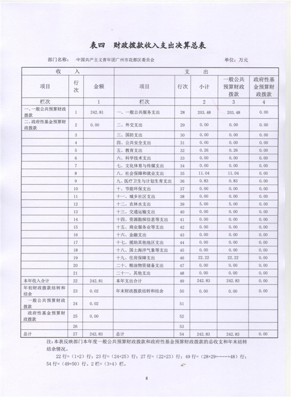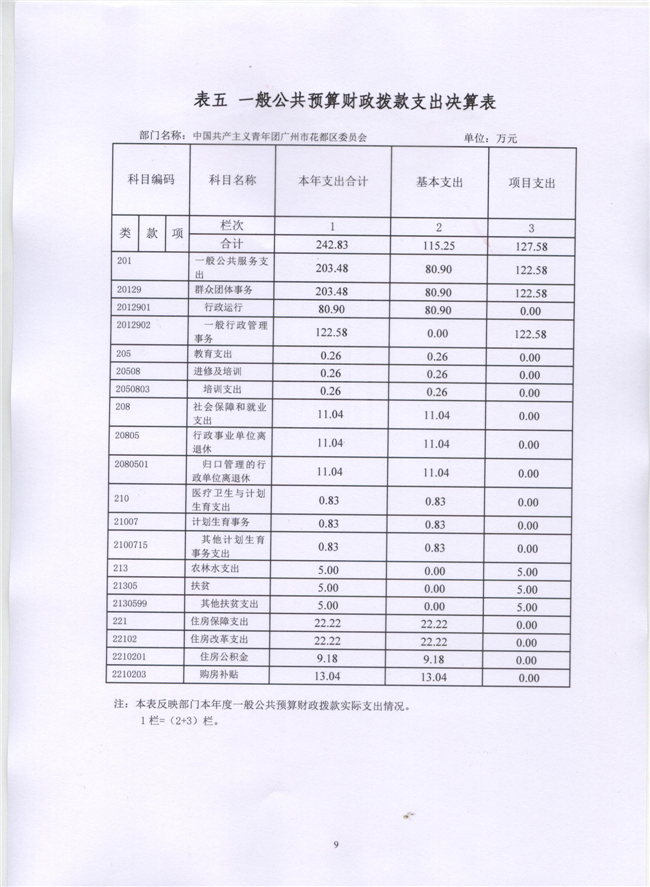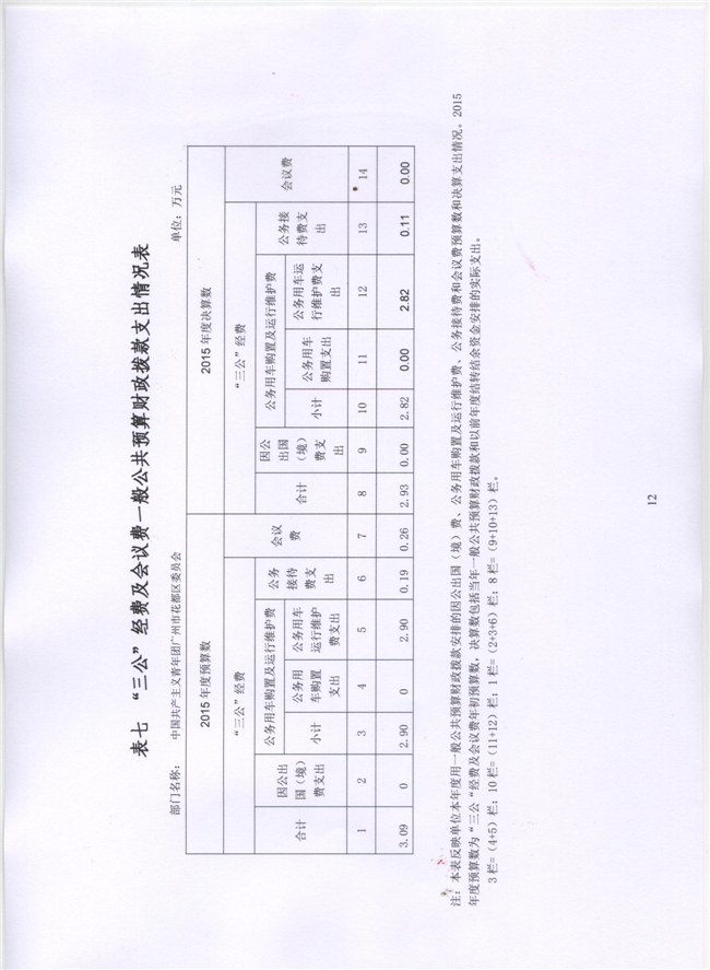 中國共產主義青年團廣州市花都區委員會2015年度部門決算