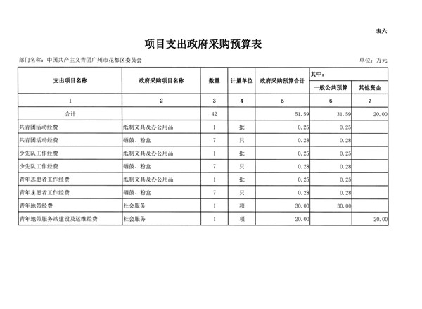 中國共產主義青年團廣州市花都區委員會2016年部門預算