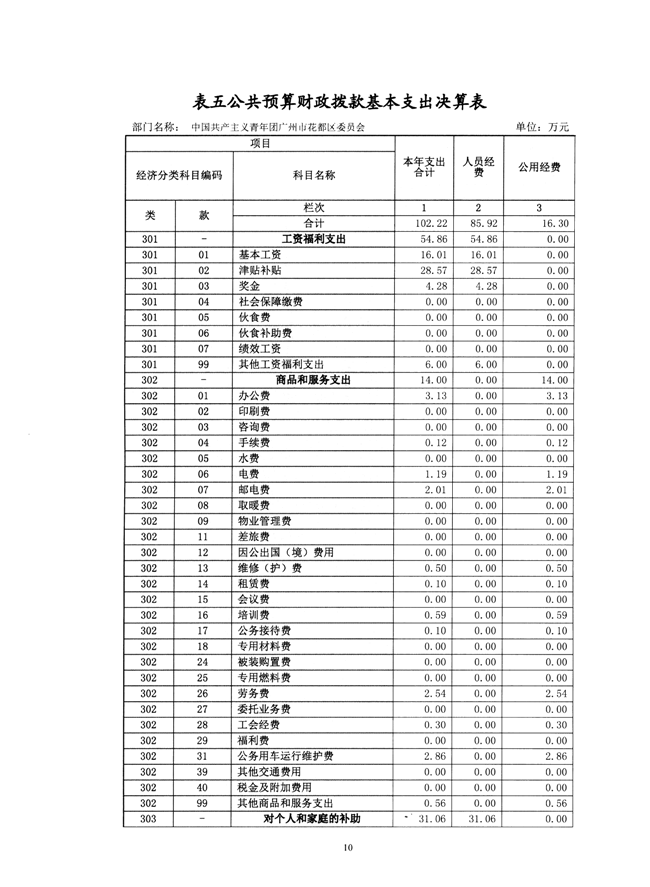 中國共產主義青年團廣州市花都區委員會2014年度部門決算