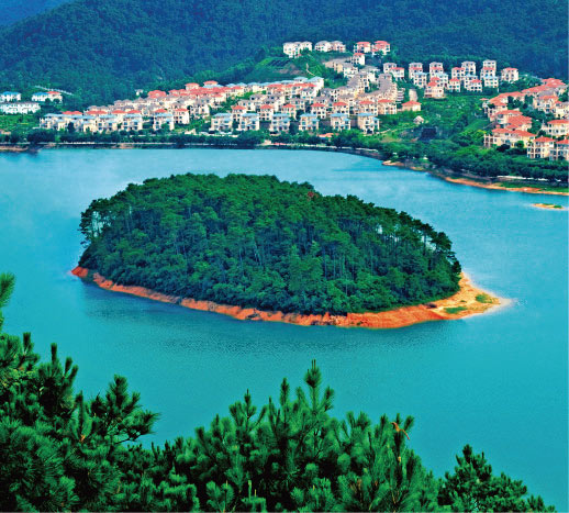 芙蓉リゾート地區(qū)は山、林、湖、泉という景観を以て有名となり、優(yōu)れた自然景色や神話伝説があり、沢山の人文古跡のある旅行勝地になっている。芙蓉峰は芙蓉山とも言い、海抜は360 メートルで、山々は幾重にも重なり合ったりして、半徑の數(shù)十キロまで山上の石表面に墨色があり、しかも芙蓉花の形を示している。芙蓉峰に桃花水母が鑑賞できる可能性がある。桃花水母とは名実ともに活化石であり、極めて高い研究価値と観賞価値がある。