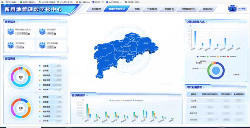 該系統旨在整合留用地涉及的國土空間規劃、城鄉規劃、權屬信息、產業數據等多類基礎地理信息,構建統一、權威的區級留用地數據底座。平臺將集成數據管理、可視化展示、管理決策支持與跨平臺服務等功能,致力于打造一個集智能分析與動態監管于一體的留用地綜合管理平臺。通過該系統,可實現留用地從輔助選址、兌現、開發到出讓的全流程智慧化決策分析與跟蹤管理,顯著提升留用地動態監管的智能化與精細化水平。