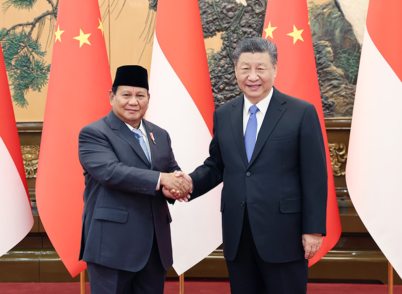 新華社北京4月1日電 4月1日下午,國家主席習近平在北京人民大會堂同印尼當選總統普拉博沃舉行會談。