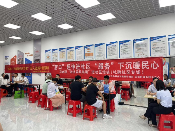 今年初,花都區政務服務和數據管理局在全市率先印發《“政務春風送暖”行動十六條》,以“思想轉變+機制優化+科技賦能”為核心,旨在全方位提升花都區政務服務效能,打造透明、高效、便捷的政務服務環境。隨后,區政務服務和數據管理局聯合公安、稅務、不動產、醫保、社保等部門深入開展政務服務進園區、進企業、進校園、進社區“四進”行動,主動將便民服務送上門,將固定窗口變成移動窗口。企業和群眾在“家門口”即可辦理養老保險、身份證補辦、駕駛證換證等政務服務。