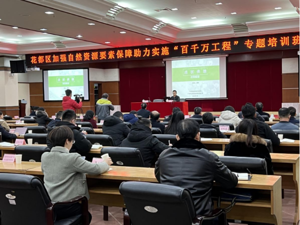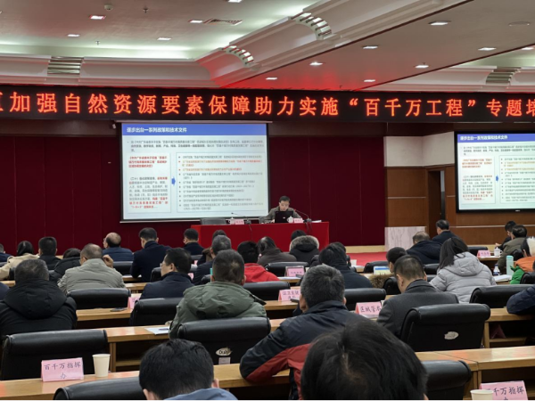 為做好自然資源要素保障,促進城鄉區域協調發展,助力實施“百縣千鎮萬村高質量發展工程”,1月25日下午,我區邀請了市規劃和自然資源局耕地保護和村莊規劃處林錫藝處長、市交通規劃研究院有限公司城市規劃與策劃所劉瑋總工程師開展“自然資源要素保障助力實施百千萬工程”專題授課培訓。區“百千萬工程”指揮部領導、區“百千萬工程”指揮部各成員單位主要負責同志和各鎮(街)黨政主要領導、區“百千萬工程”指揮辦等100多人參加了本次培訓。