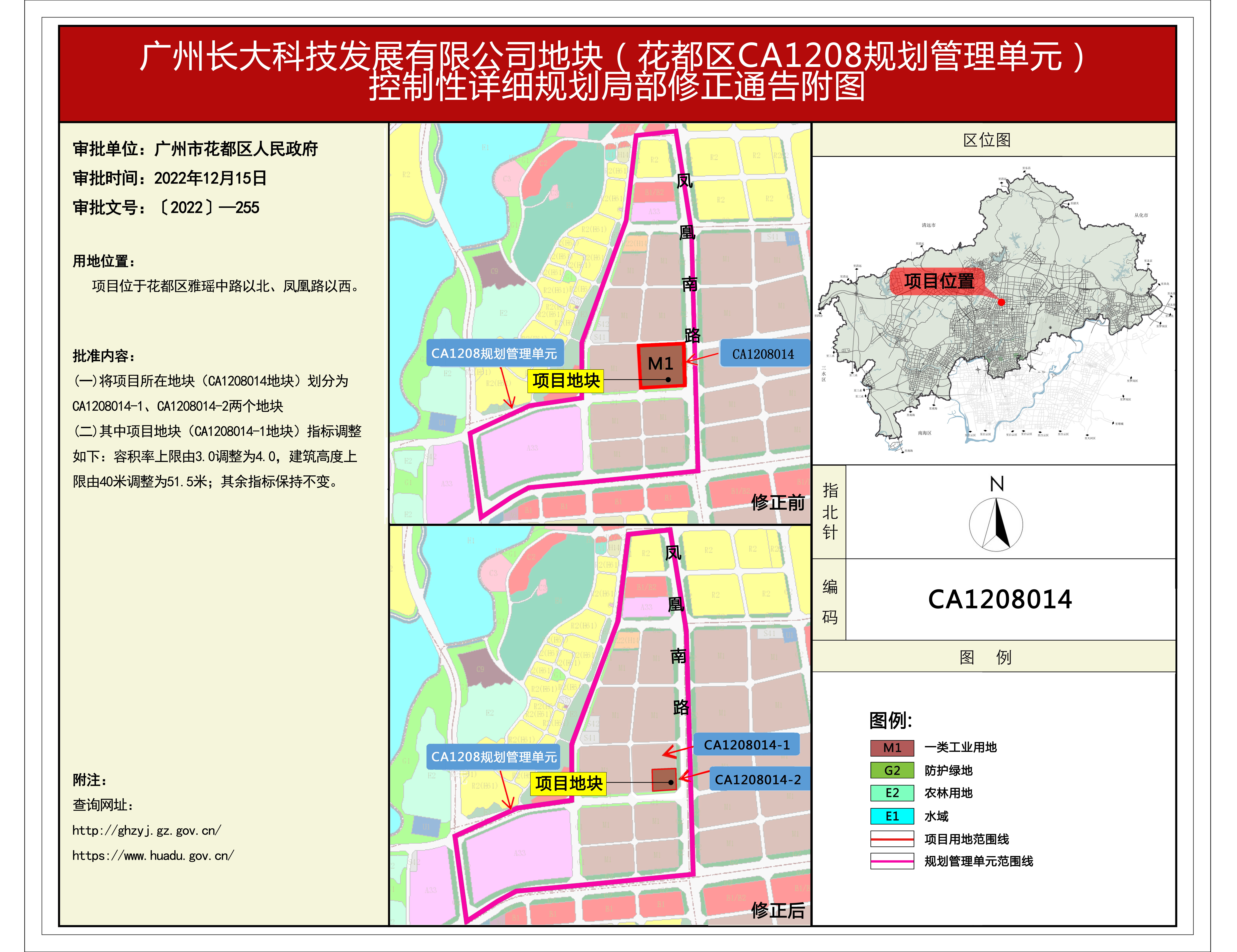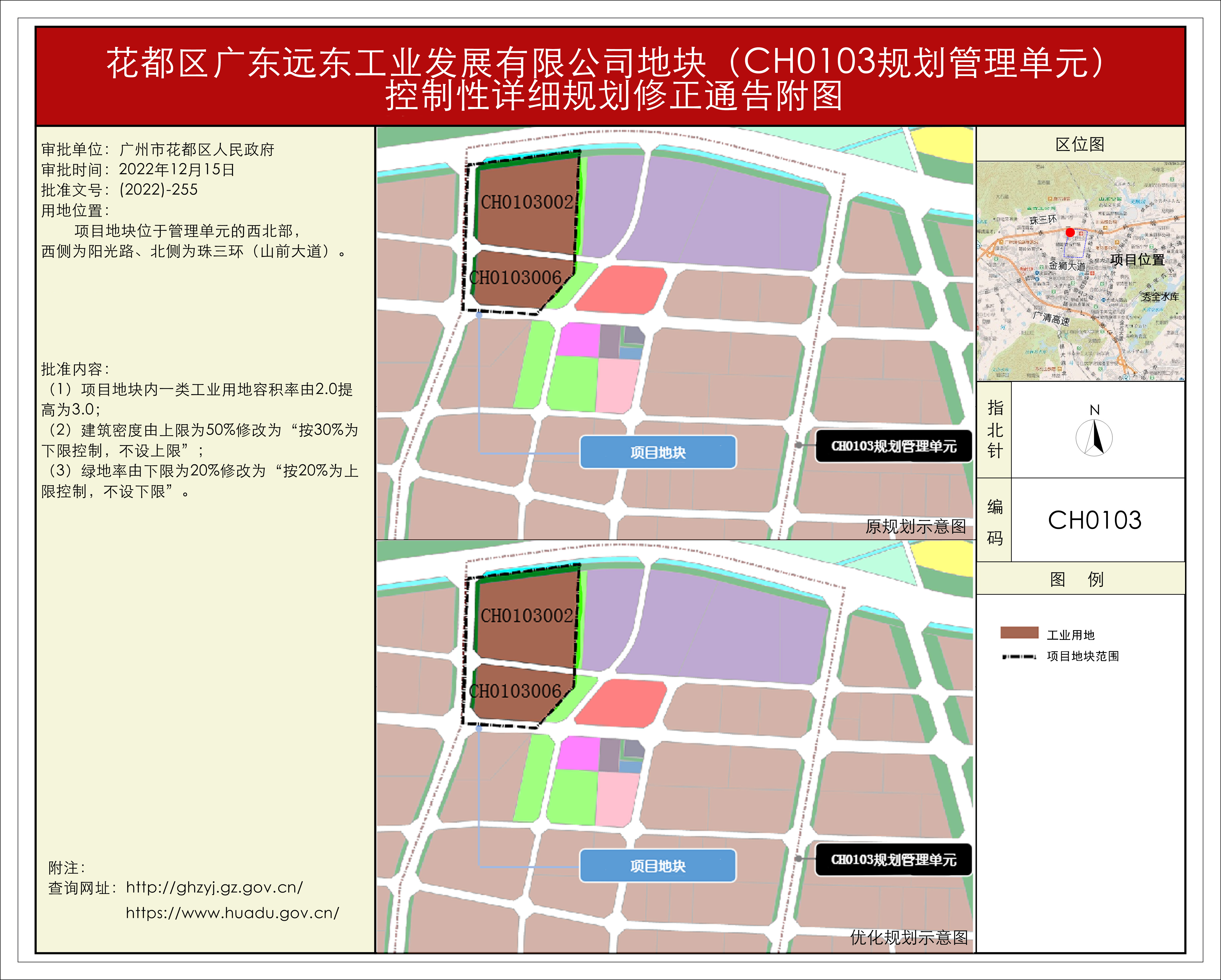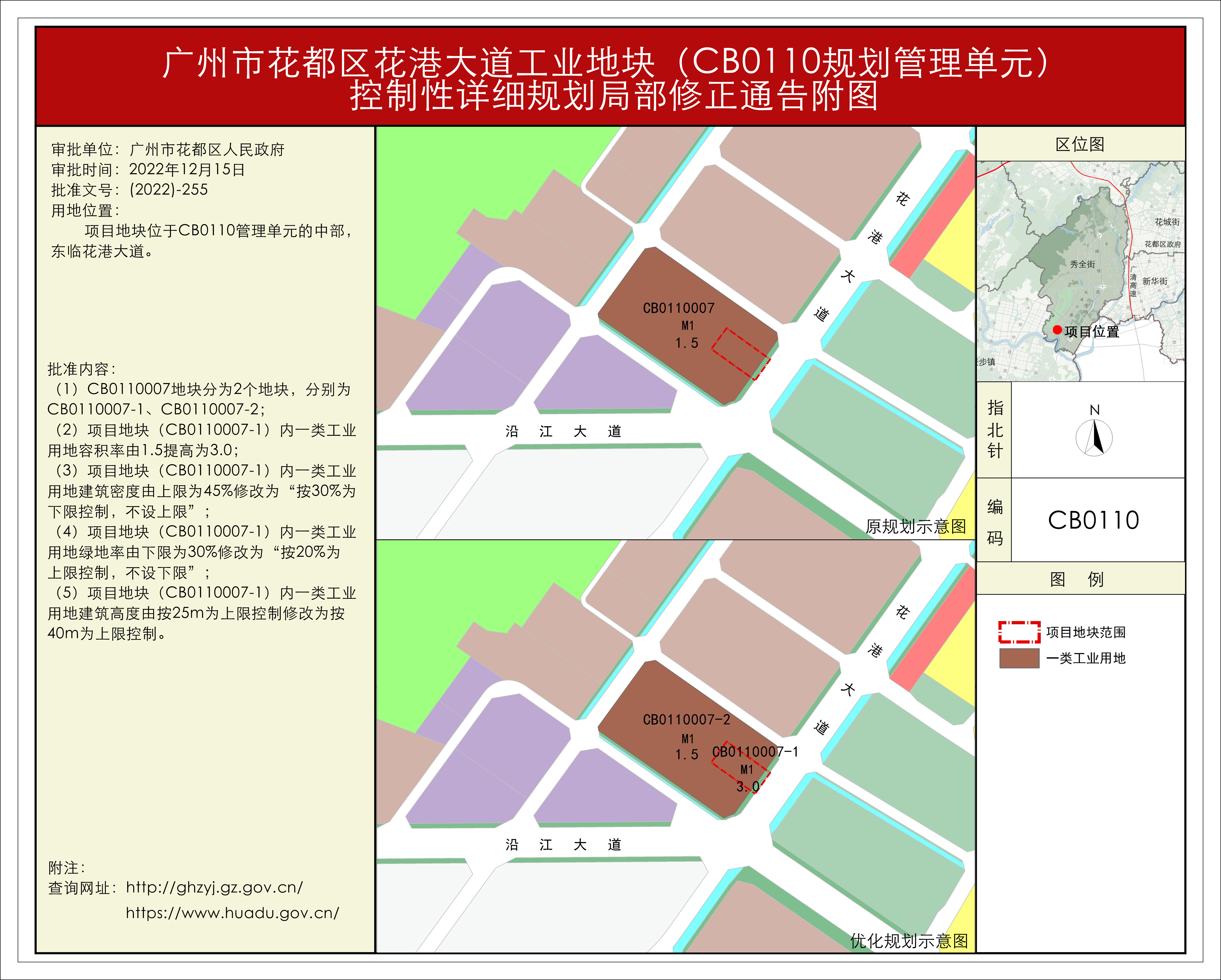 根據《廣東省城市控制性詳細規劃管理條例》的要求,《田美村東南經濟社舊村改造項目、橫潭河西經濟社舊村改造項目控規修正》《廣州風神汽車有限公司花都一工廠、發動機工廠地塊(花都區CB0102規劃管理單元)控制性詳細規劃修正》等62項規劃成果(詳見附件1)已完成批前公示,并經原廣州市花都區城市規劃聯席委員會、現廣州市花都區城市規劃聯席委員會規劃專業委員會審議通過后獲廣州市花都區人民政府(受廣州市人民政府委托)批準(〔2022〕-255),自批準之日(2022年12月15日)起生效。