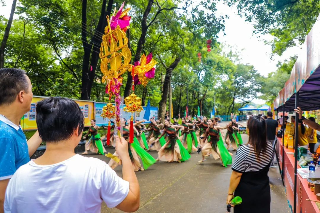 本次活動還在盤古王公園入門廊道設有民俗文化集市,包括美食區、文創區、手信區、非遺區,有機融合非遺項目和時尚潮流元素,匯聚多元文化精粹,注重互動體驗交流。市民游客既可以品嘗到地道的花都臭屁醋、利農蒸酒、花都燒骨等非遺美食和特色小吃,也可以欣賞到灰塑、廣州琺瑯、釘金繡裙褂、獅嶺打銅、瑞嶺盆景、花都面塑等非遺文創產品和花都特色手信,同時還能體驗百年傳承的李氏正骨,沉浸式感受民俗傳統文化魅力。