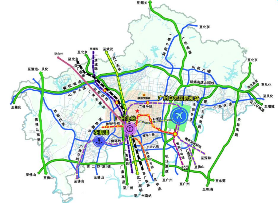 “十四五”末,空鐵聯運大綜合交通體系建設取得重大進展,白云國際機場擴建及綜合換乘樞紐基本建成,地鐵和城際軌道交通建設初顯成效,與機場聯接的高速路、快速路、市政路建設穩步推進,基本實現空港與大灣區主要城市“1小時直達”,白云國際機場與廣州北站“6分鐘連接”。