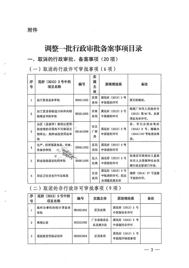 廣州市花都區人民政府關于調整一批行政審批備案事項的通知【花府[2015]8號】