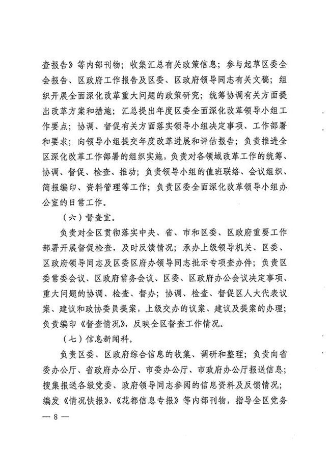 廣州市花都區(qū)人民政府辦公室關(guān)于印發(fā)中共廣州市花都區(qū)委辦公室、廣州市花都區(qū)人民政府辦公室主要職責(zé)內(nèi)設(shè)機(jī)構(gòu)和人員編制規(guī)定的通知 【花府辦[2015]18號(hào)】