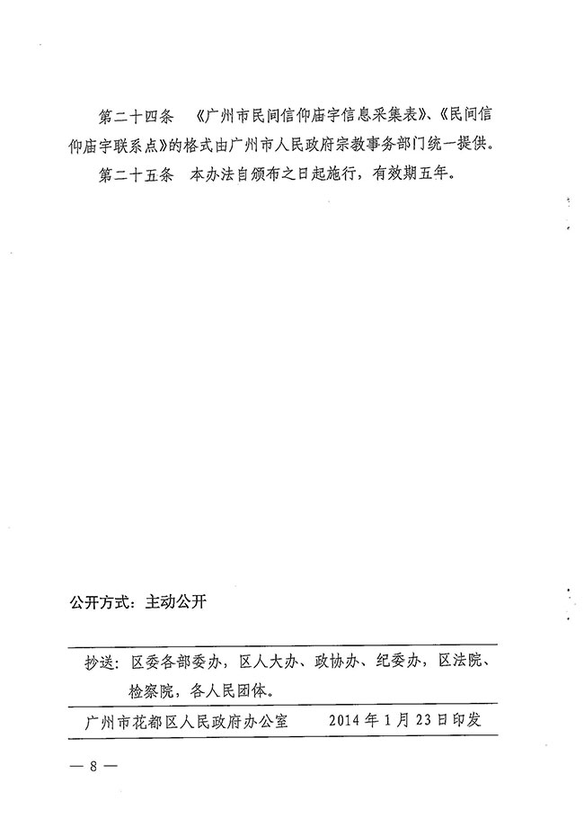 廣州市花都區(qū)人民政府辦公室關(guān)于印發(fā)花都區(qū)民間信仰廟宇管理辦法的通知 【花府辦[2014]2號(hào)】
