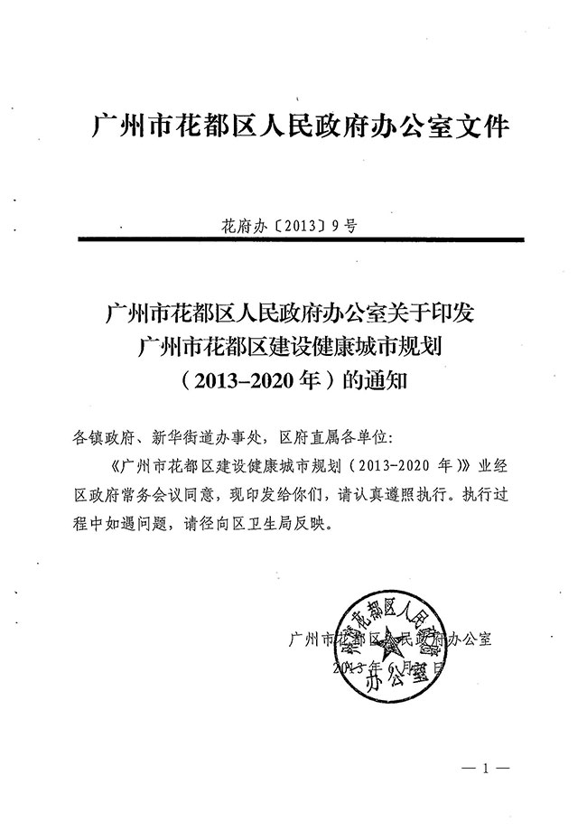 廣州市花都區(qū)人民政府辦公室關于印發(fā)廣州市花都區(qū)建設健康城市規(guī)劃(2013-2020年)的通知 【花府辦[2013]9號】