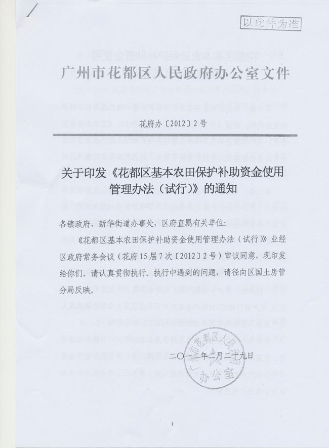 關(guān)于印發(fā)《花都區(qū)基本農(nóng)田保護(hù)補(bǔ)助資金實(shí)用管理辦法(試行)》的通知 【花府辦[2012]2號(hào)】