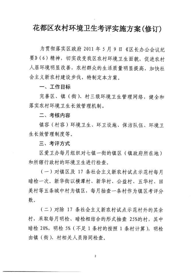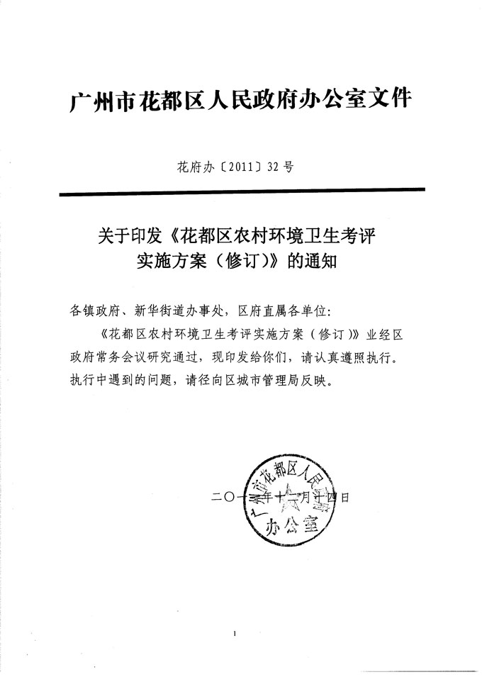 關于印發《花都區農村環境衛生考評實施方案(修訂)》的通知 【花府辦[2011]32號】
