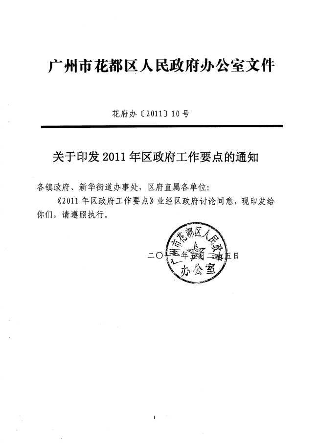 關(guān)于印發(fā)2011年區(qū)政府工作要點(diǎn)的通知 【花府辦[2011]10號】