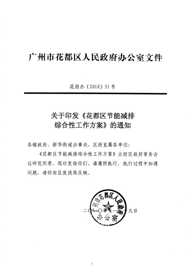 關于印發《花都區節能減排綜合性工作方案》的通知 【花府辦[2010]51號】