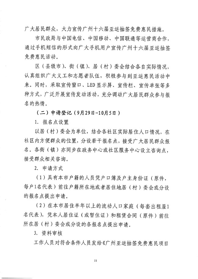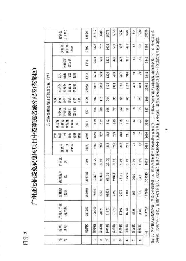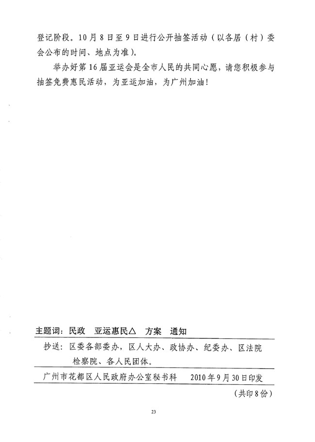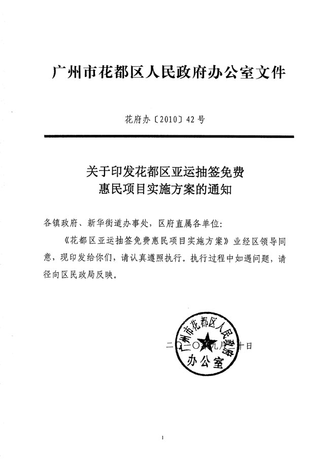 關于印發花都區亞運抽簽免費惠民項目實施方案的通知 【花府辦[2010]42號】