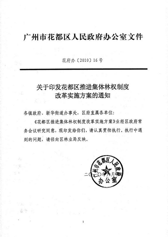 關于印發花都區推進集體林權制度改革實施方案的通知 【花府辦[2010]16號】