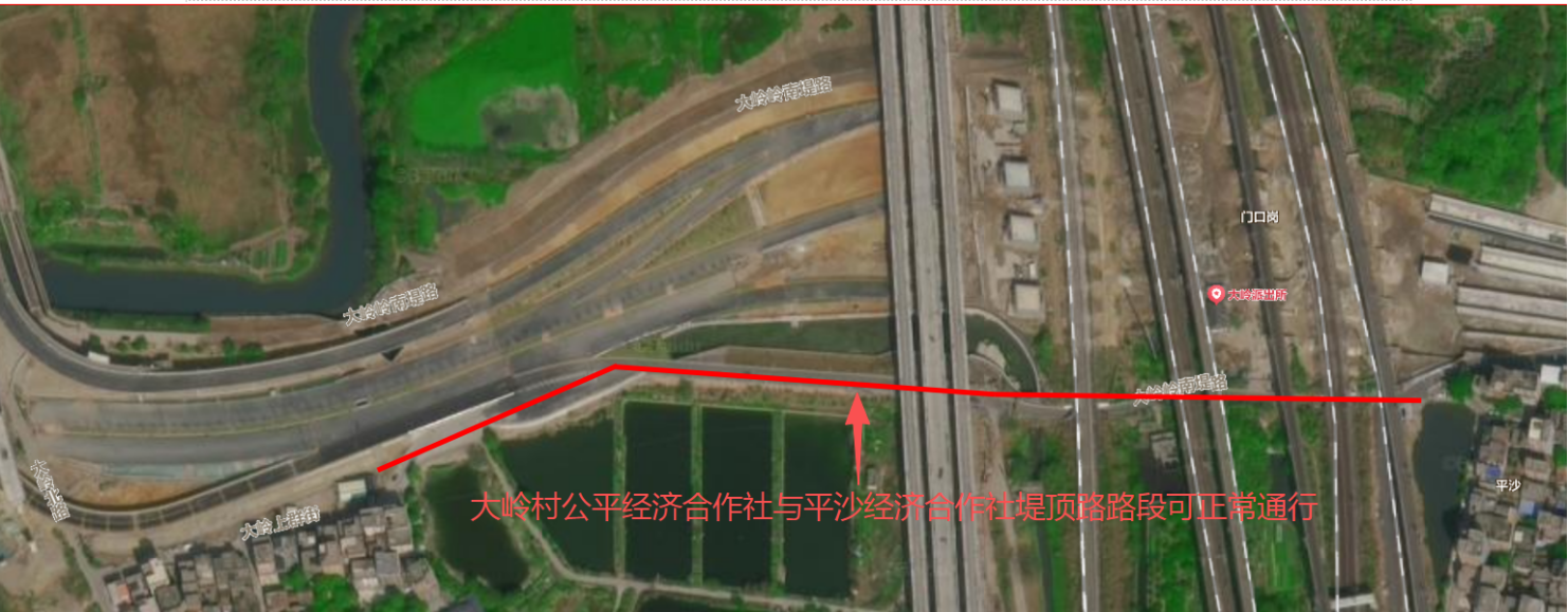 上述范圍大嶺公平經(jīng)濟合作社與平沙經(jīng)濟合作社堤頂路路段可正常通行